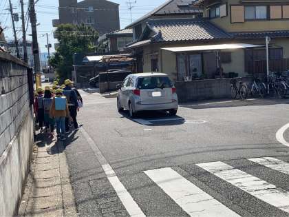 ※市バス22号が通過する十字路付近の横断歩道は、「見守り隊=緑のおじちゃん」が見守ってくれています!いつもありがとうございます(o^−^o)