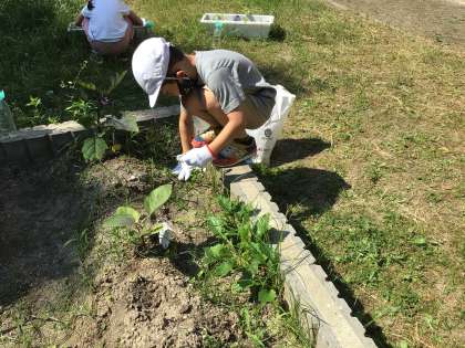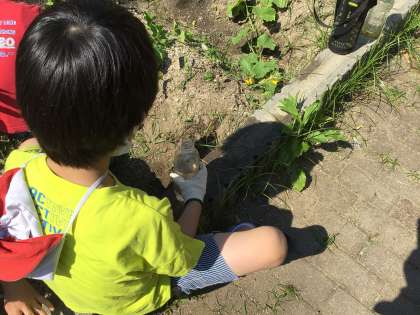 ていねいにざっそうをぬいて,ペットボトルでお水をあげました。