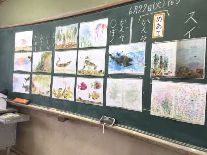 みんな,すてきなお話をたのしんでいました。絵本を読むと,14ページのうち7ページも一人ぼっちのスイミー。こんなに一人でいたんだと,あらためて気がつく絵本でした。