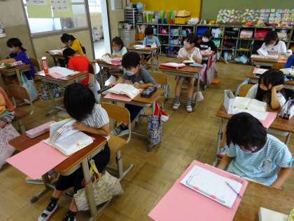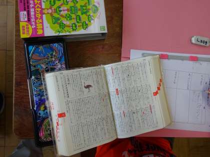 国語辞典を使って言葉の意味を調べる練習をしています。だんだん見出し語を見つけるのが早くなってきました。