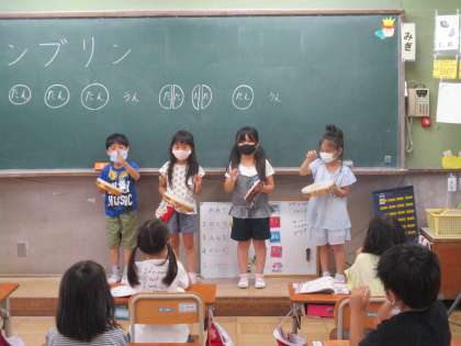 持ち方を確認し,拍に合わせて良い音が出せるようがんばっていました。