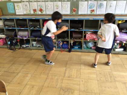 どんな場面かそうぞうしながら,ともだちと なりきり会話をしたり,うごきをまねしたりしました。