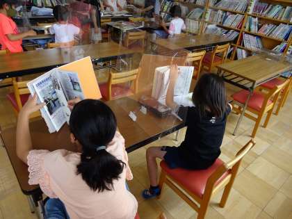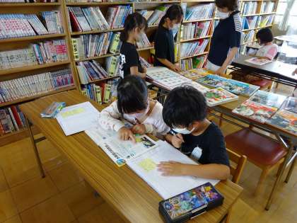 学校図書館では,司書の宇都宮先生にも手伝っていただいて,本を探して,分かったことをメモしています。