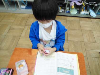 2ふんいないに,かあどをいうれんしゅうをしています。