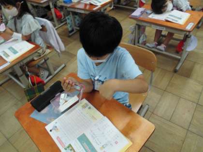 1ねんせいは,けいさんかあどにちょうせんしています。