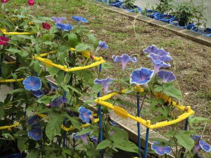 きょうみると,おおきなすてきなあさがおのはなが,たくさんさいていました。