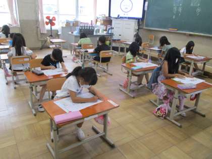 国語のテストをしました。