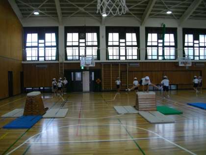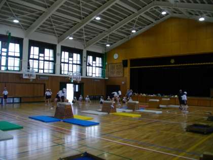 子どもたちが自分に合った高さのとびばこに挑戦していました。