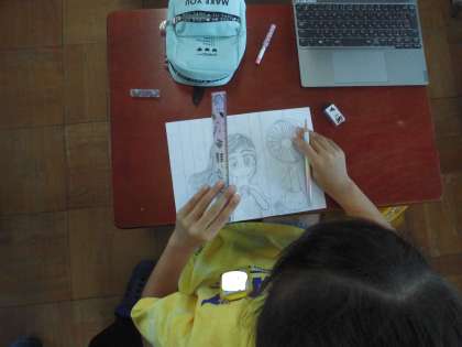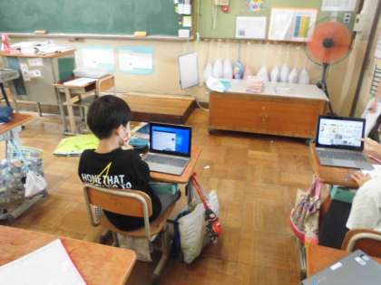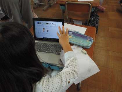 図画工作の時間に「お話の絵」を学習しています。今日は,ギガ端末を使用して絵の構成を考えていました。どんな作品が出来上がるか楽しみです。