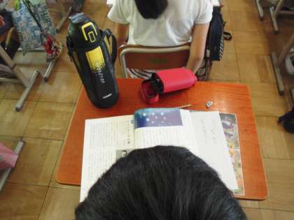 国語の時間に「やまなし」を学習しています。今日は,やまなしを感想書をノートに書いていました。