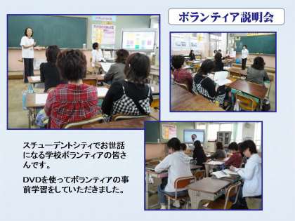 28日(水)に行われるスチューデントシティ(SC)学習に向けて,学校ボランティアの皆様の説明会を行いました。