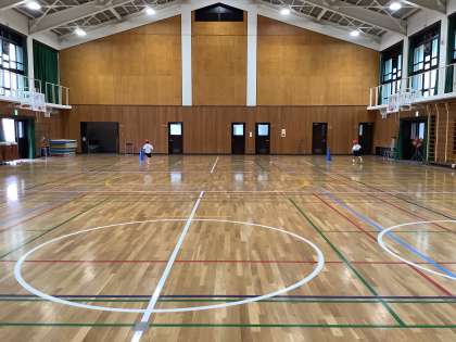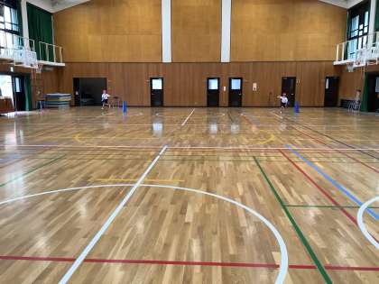 今日は雨で運動場が使用できなかったので,体育館でルールを確認しながら進めました。