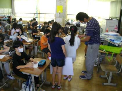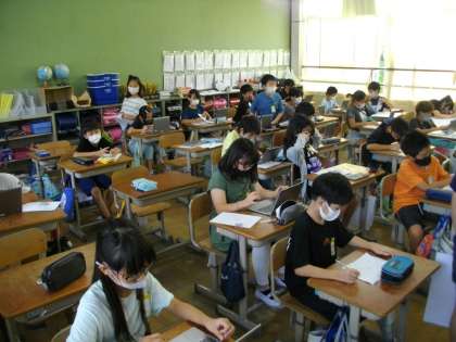 絵の下絵を描いています。必要に応じてGIGA端末も活用しています。