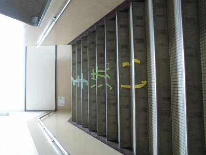 かいだんをみると,「手洗い(てあらい)」のもじがありました。