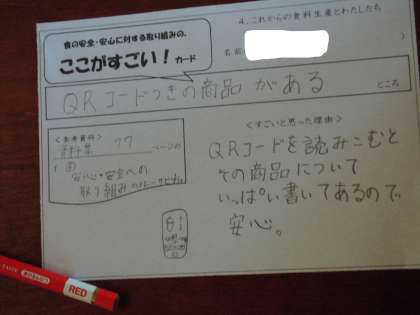 その中で,トレーサビリティーの仕組みや,検疫所を通して食料が運ばれていることや,地産地消の物を購入することで自分の住んでいる地域等で作られているものを食べることができると分かりました。