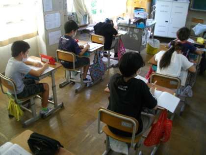 式と計算の学習で答え合わせをしました。子どもたちは,朝から集中していました。
