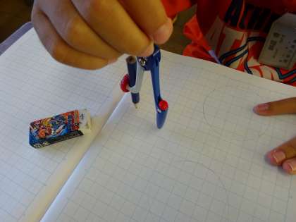 コンパスを使って円をかく練習をしました。はじめは難しかったですが,何度も練習するうちにだんだん上手にかけるようになってきました。