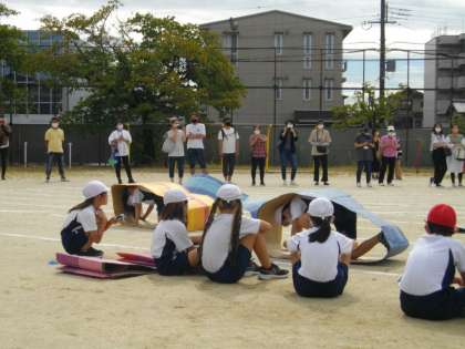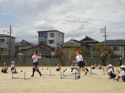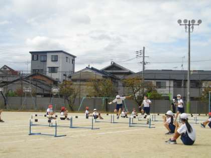 ハードルのインターバルは一人ずつちがうため,その都度子どもたちがセットしていました。