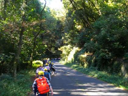 子どもたちは,がんばって小関越えをしました。なかなかしんどかったですね。途中で第1竪抗の跡が残っていました。水が京都へ流れて行っている様子も見られました。