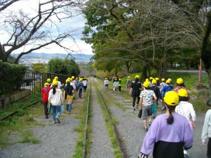 4年生全員でインクラインのレールを気持ちよく下っていきました。さあ,最後は疏水記念館です。
