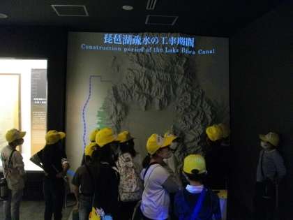 琵琶湖疏水事業の説明がプロジェクター映像で流れていました。事業にかかった年月,総労働者数,トンネルの掘削の様子などが分かりやすく説明されていました。