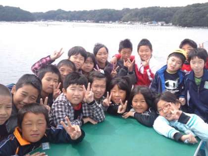 子どもたちを乗せた船は、伊勢志摩のリアス式海岸を進んでいます。景色が大変美しく、交代でデッキに上がった子どもたちは「小さな船旅」を満喫しています。