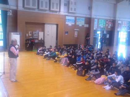 みさきの家に到着して、まずプレイホールで入所式を行いました。ホールに響きわたる声での挨拶。校歌を美しく歌う子どもたちの笑顔。