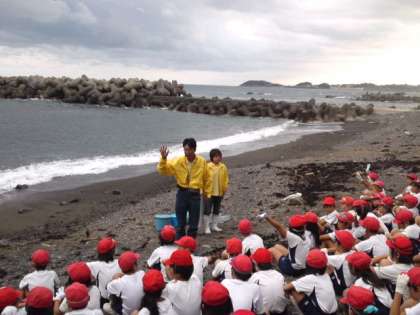 石を拾った後で、志摩マリンランドの方から、 海の生物についてお話を聞いたり、その生物を観察したりしました。