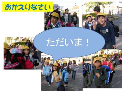 おかえりなさい!少し疲れた表情をしている子もいましたが,元気な足どりで学校へ帰ってきました。