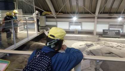 断層の見学をしています。自然の力に驚かされます。子どもたちは、学んだことをどんどんメモしています。