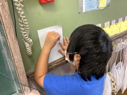 教室の壁や上靴の裏にもでこぼこがあることを発見!