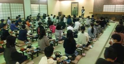子どもたちが、楽しみにしていた夕食です。後は、お風呂に入ってゆっくりします。子どもたち全員元気に過ごしています。本日のホームページのアップはこれが最後です。これ以降の様子については,明日朝にホームページにアップします。