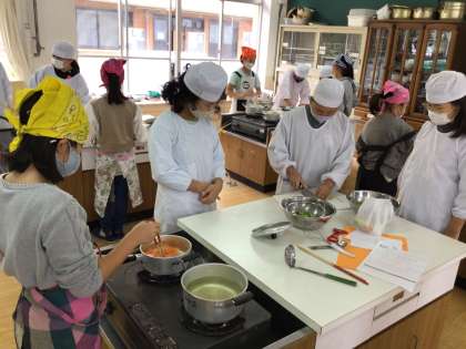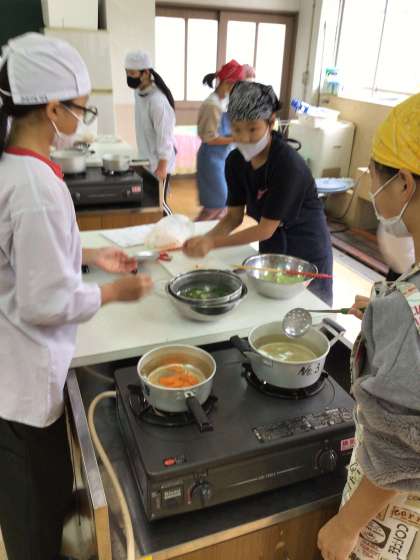 初めて,切る・ゆでるといった作業を行いましたが,みんな楽しみながら実習をすることができました。