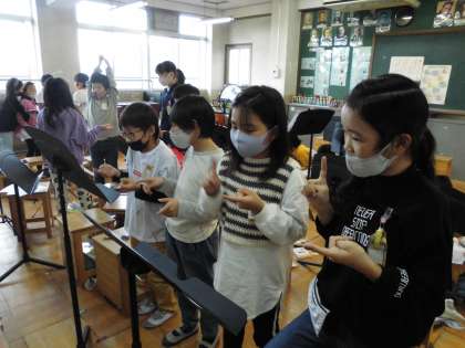 音楽の学習で,好きな言葉4文字を使って,言葉でアンサンブルします。