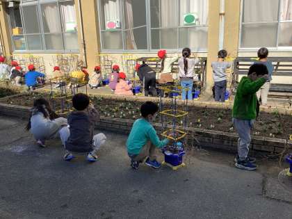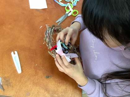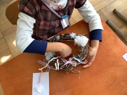絡まったつるを支柱から外すのに苦労していましたが,リースの形になるととても嬉しそうでした。