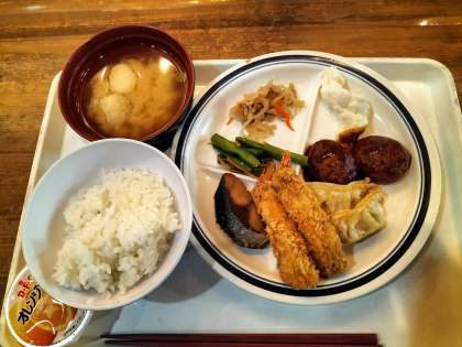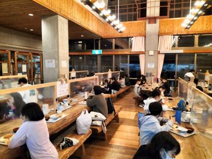 入浴のあとは食堂での夕食です。昼食に続いてご飯をもりもり食べる様子がよく見られました。