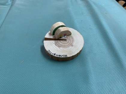 色をつけてボンドで貼るとウッド写真立てが出来上がります。