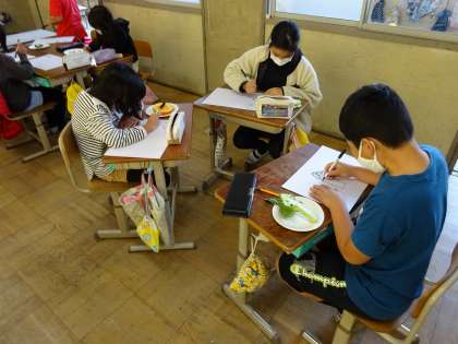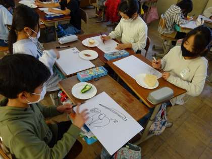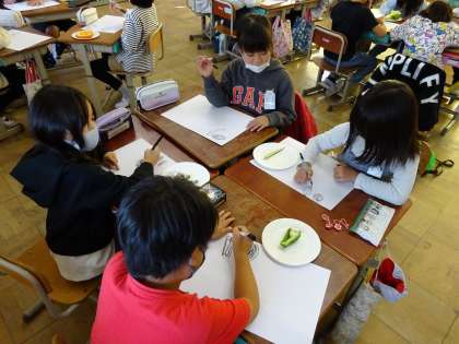 やさいの切り口をよく見て,スケッチしました。これから,これを版画にする予定です。