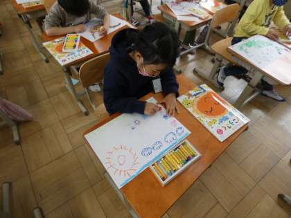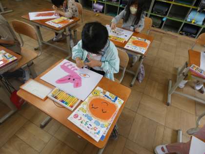 今日は図画工作の学習で自分の好きなものの絵を描きました。好きな食べ物,好きな動物,好きな乗り物…などたくさんの好きなものが出てきました。