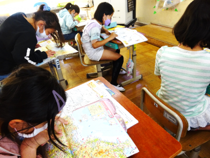 地図から見つけるのは,4年生の子たちにとって至難の業。