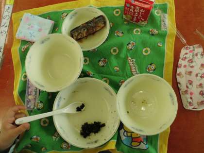 今日は魚のメニューでしたが,がんばって食べていました。