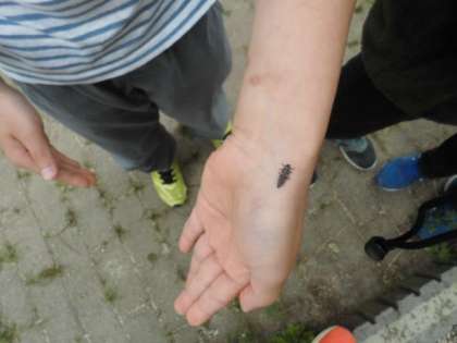 「ダンゴムシがたくさんいる」「テントウムシの幼虫だ」