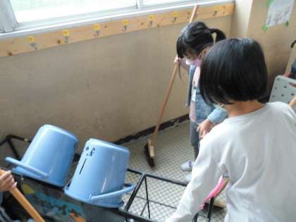 しっかりと掃除度具を使って,隅々まで掃除をしています。