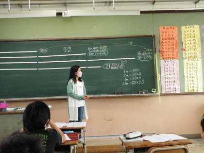 今日は,1m80円のリボンがあり,2.3mのリボンの値段を求めるにはどうしたらいいのか,みんなで考えました。