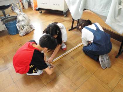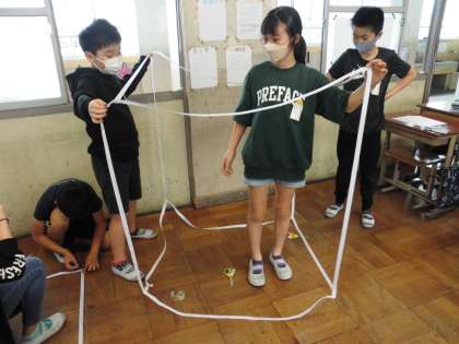 実際の大きさは想像しにくいものです。そこで,紙テープで1mを測って立方体の形を作ってみました。