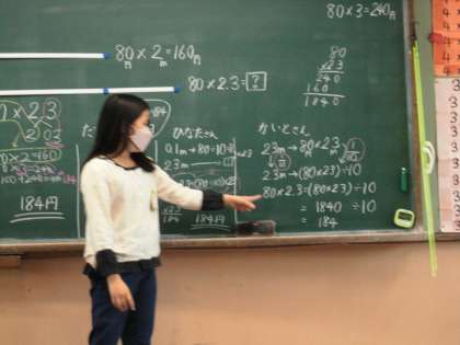 5年生の小数のかけ算の授業の様子です。