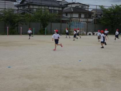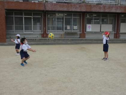 今日は体育の学習で,おにごっこやどんじゃんけん,キャッチボールをしました。