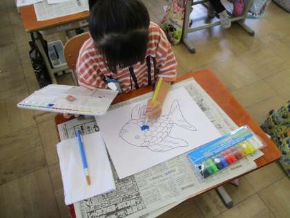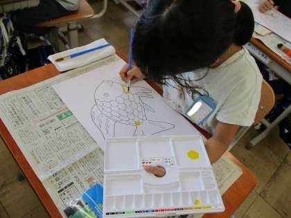 子どもたちが楽しみにしていた絵の具の学習です。