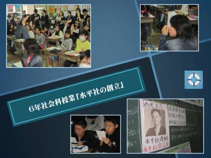 11月7日(月)6校時に6年1組で社会科授業「西光万吉と水平社宣言」が行われました。差別から決して逃げず,差別と正面から向きあうことを選んだ西光万吉は,他の同志と共に全国水平社を創立します。彼が『水平社宣言』に込めた思いや願いを考え,厳しい差別を受けながらも,それに屈せず,すべての人々の人権が守られることを訴えた人々の生き方を知るという授業です。熱い思いのこもった教材です。