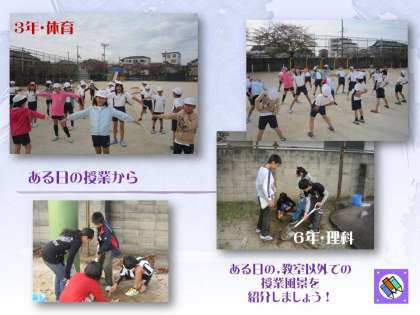 6年生が運動場のあちらこちらでスコップをふるって穴を掘っています。いったい何事でしょうか?実は地層の学習なのです。この学校の運動場の地下50メートルまでの地層はサンプル(学校建設時に作成)を見ながら学習することになります。その前の導入の授業の一部がこれなのです。いったい何を発見したでしょうか。
